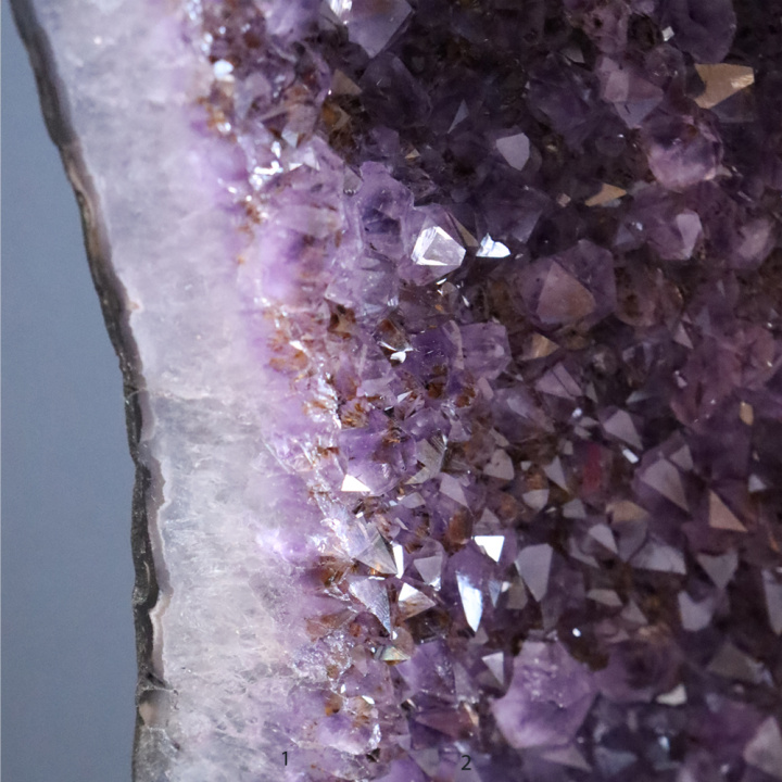 De steen vormt zich in gasbellen in vulkanisch gesteente, waar door miljoenen jaren heen prachtige kristallen ontstaan. Deze geodes zijn afkomstig uit de regio Rio Grande do Sul in Brazilië, waar de meest intense en krachtige amethistlagen ter wereld te vinden zijn.