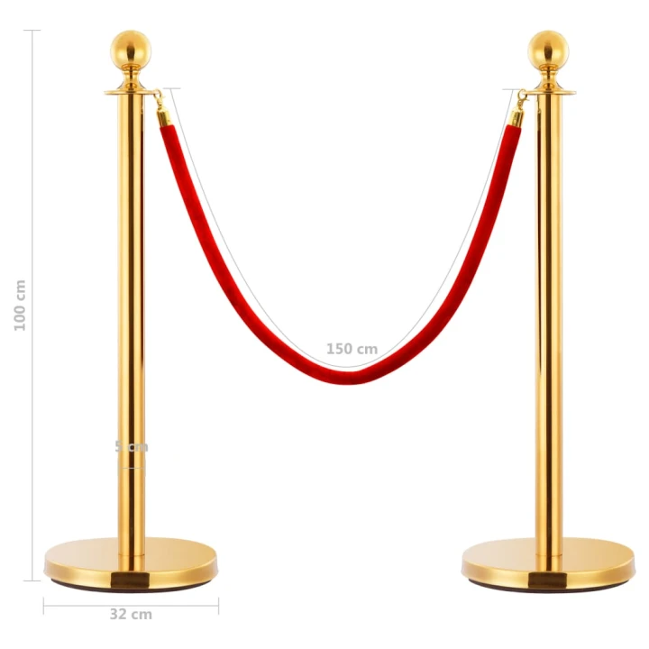 Het meegeleverde fluwelen touw van 150 cm is voorzien van haken aan beide uiteinden, zodat u de set eenvoudig kunt opstellen of uitbreiden met extra palen.