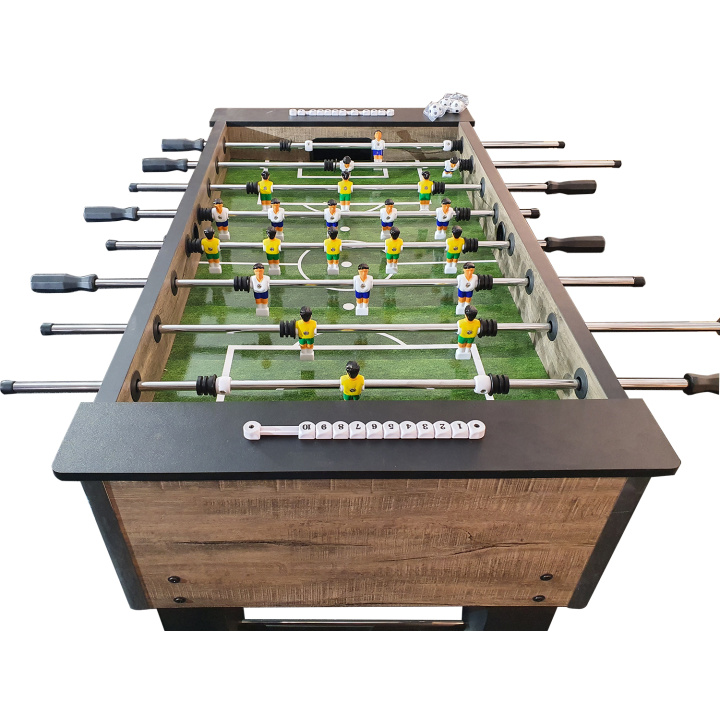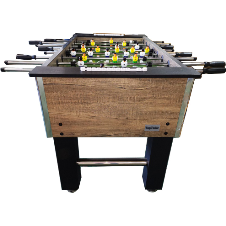 Stoere voetbaltafel met houtprint, geschikt voor kinderen vanaf 12 jaar en volwassenen.