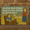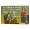 Humor in huis? Dit grappige metalen wandbord zegt precies wat veel mannen herkennen: Volgens mijn vrouw maak ik twee fouten: ik luister nooit en… nog iets.