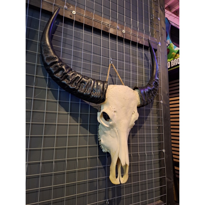Met zijn royale afmetingen van circa 76 cm breed en 86 cm hoog is dit een decoratief pronkstuk dat direct de aandacht trekt. Hang de schedel op aan de muur in je woonkamer, mancave, bar, of zelfs buiten onder een overkapping voor een ruige, natuurlijke sfeer.