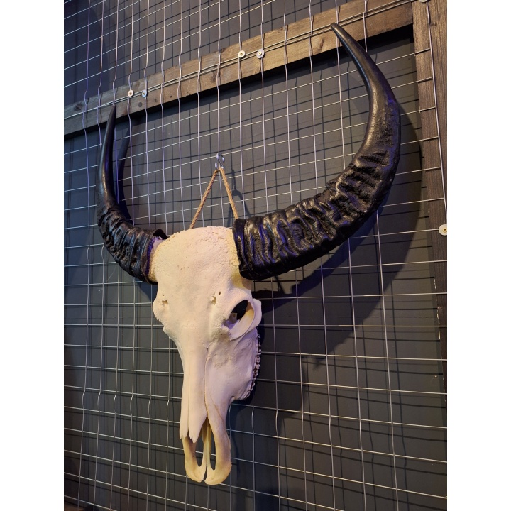 Aan de achterkant bevindt zich een stevige ophanglus, waardoor het eenvoudig is om de schedel veilig aan de muur te bevestigen. Elk exemplaar is uniek geen enkele schedel is hetzelfde, wat zorgt voor een authentiek en karaktervol accent in je ruimte.