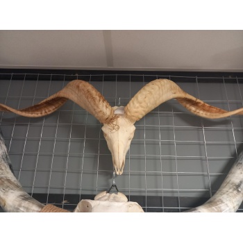 In de achterkant zit een lus zodat u hem kunt ophangen. De afmeting van de schedel is circa 83,5cm breed en 88cm hoog.