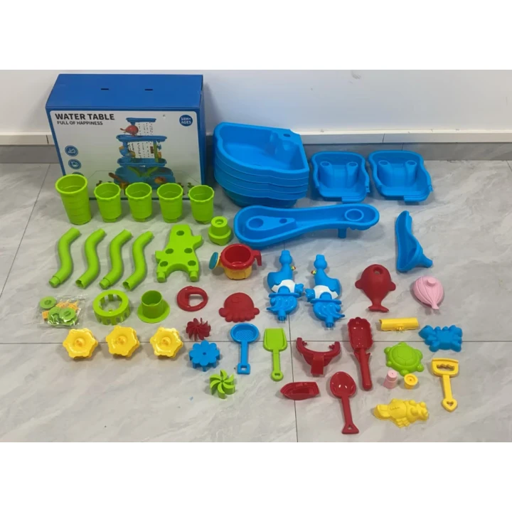 Wat deze tafel extra bijzonder maakt? De inbegrepen olifant met pompfunctie laat het water rondstromen, waardoor bootjes, molens en wielen in beweging komen. En wist je dat de tafel ook gewoon met zand gevuld kan worden? Daarmee wordt het niet alleen een watertafel, maar ook een volwaardige zandtafel.