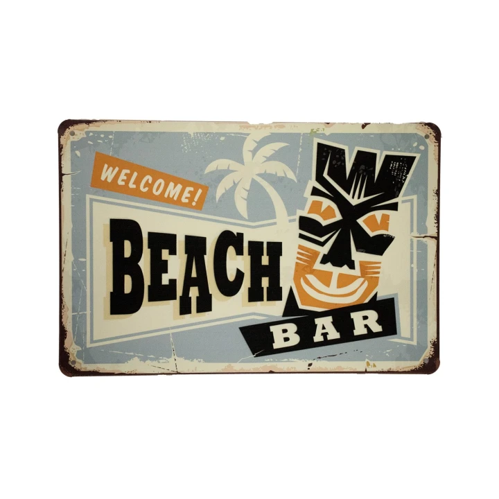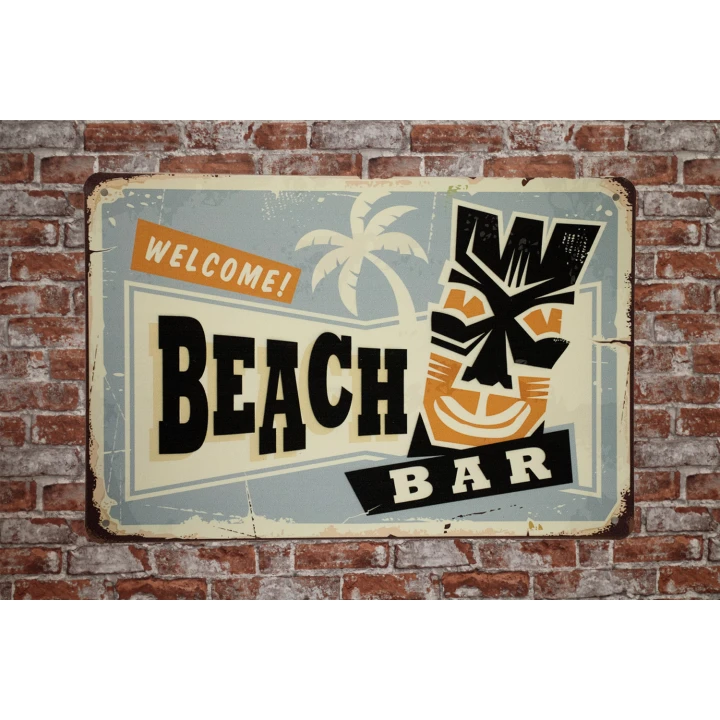 Welcome Beach Bar – Metalen borden is een bijzonder decoratiestuk / Wand decoratie voor aan uw muur. U kunt het bordje ophangen in bijvoorbeeld uw mancave, schuur, huis, bar, café, garage, werkplaats, buiten, hobby kamer of women cave.
