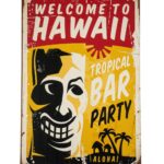 Breng het vakantiegevoel naar je huis met het Welcome to Hawaii metalen wandbord van Cave & Garden.