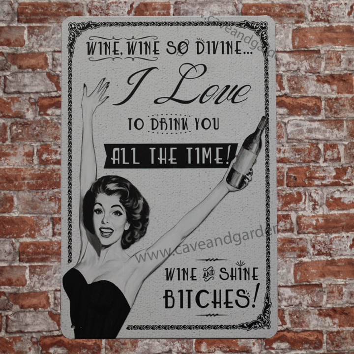 Wine wine so divine Metalen borden is een bijzonder decoratiestuk / Wand decoratie voor aan uw muur. U kunt het bordje ophangen in bijvoorbeeld uw mancave, schuur, huis, bar, café, garage, werkplaats, buiten, hobby kamer of women cave.