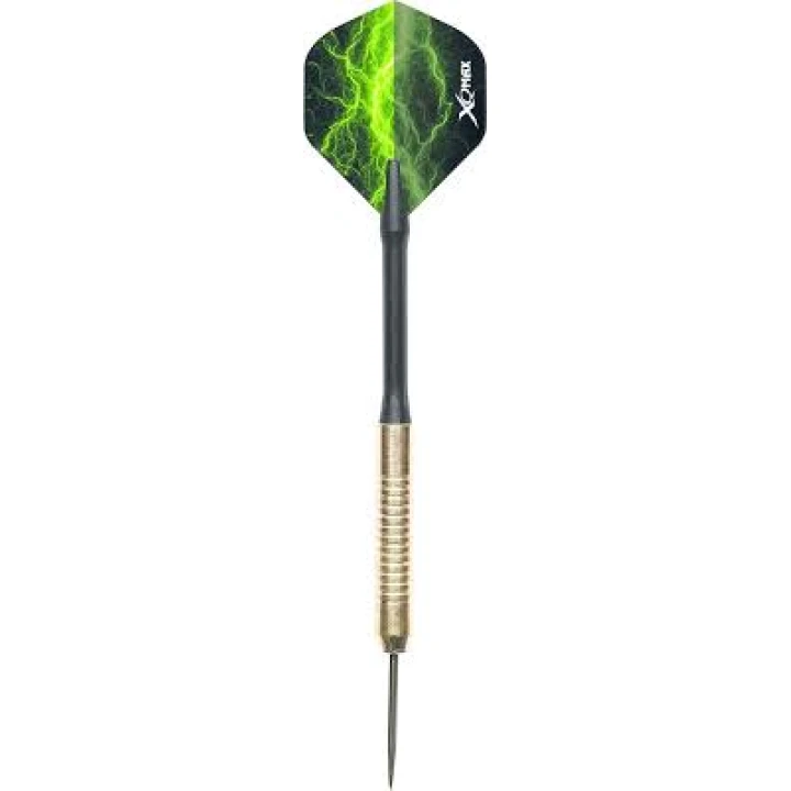 De set wordt geleverd met een dartbord, 6 dartpijlen van 18 gram, een stift en eraser, een scorebord én 3 oranje en 3 groene flights.