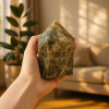 Decoratief Object: Vanwege de mystieke uitstraling en het indrukwekkende formaat wordt Zwarte Maansteen 450-500 gram ook vaak gebruikt in feng shui-installaties en als decoratief object in huis of spirituele ruimtes. De steen wordt vaak geplaatst op een altaar of in een rustgevende ruimte om positieve energie aan te trekken.