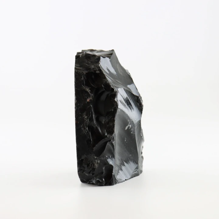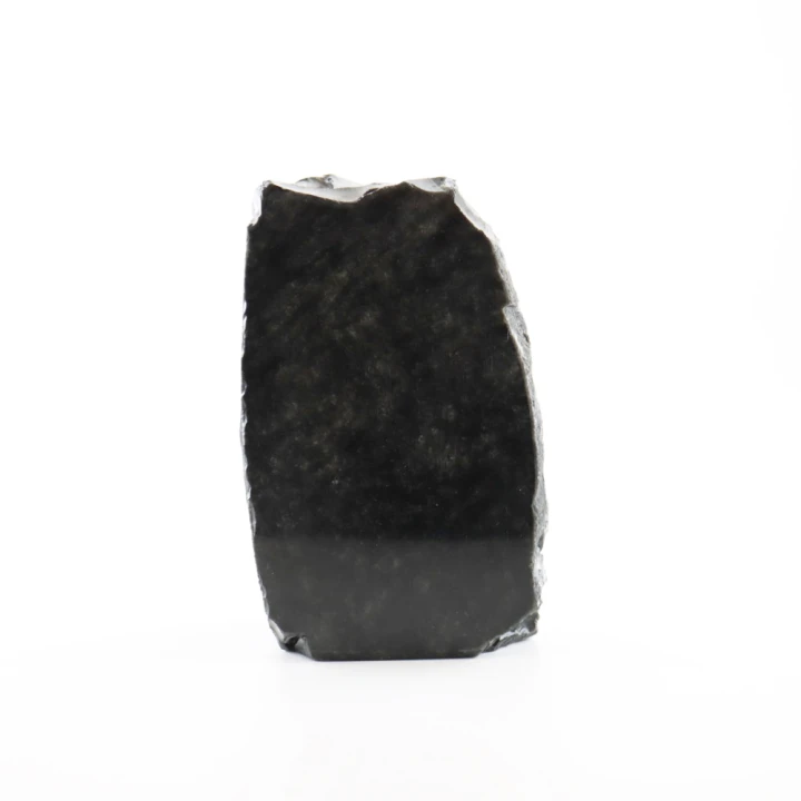 De gepolijste zijde van dit stuk onthult de diepzwarte spiegelachtige glans, terwijl de ruwe zijde de natuurlijke oorsprong van de steen respecteert. Dit maakt het een krachtig object voor zowel spiritueel gebruik als decoratie.